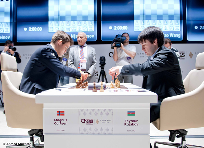 "Shamkir Chess 2014" проходит в Центре Гейдара Алиева в Шамкире с 19 по 30 апреля. Турнир, организованный ОАО "Synergy Group", проводится в рамках "Государственной программы по развитию шахмат в Азербайджане в 2009-2014 годах".