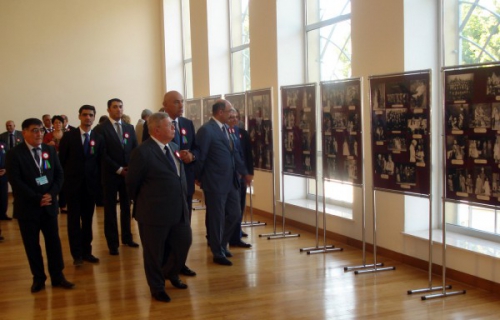 Далее в фойе Шекинского государственного драматического театра имени Сабита Рахмана руководители структур-организаторов фестиваля и гости под музыку в исполнении камерного ансамбля ознакомились с выставкой, посвященной 100-летию выдающегося представителя национального театрального и киноискусства, народного артиста Лютфяли Абдуллаева и истории азербайджанского театра.
