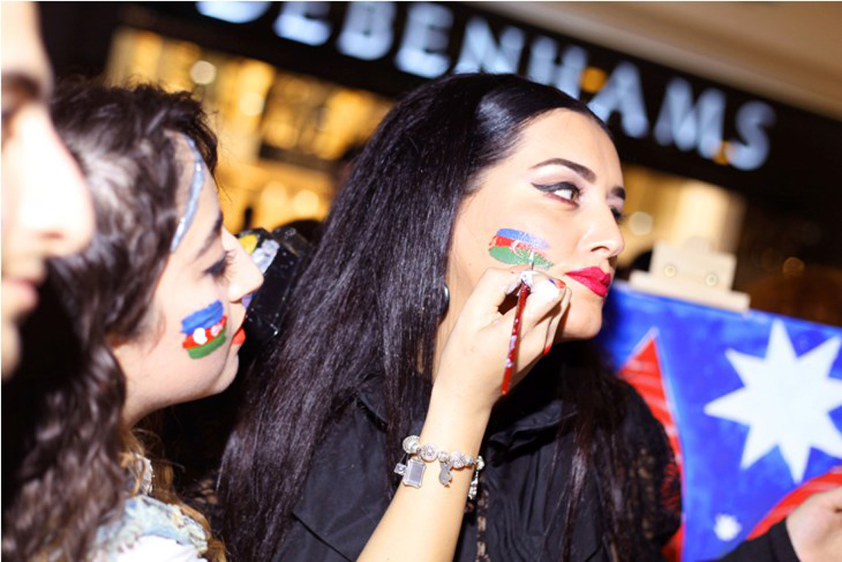 Одним из интересных моментов мероприятия стал face-art национального флага для участников вечера, которые провели художники Гусейн Багиров и Нармин Гумбатова.