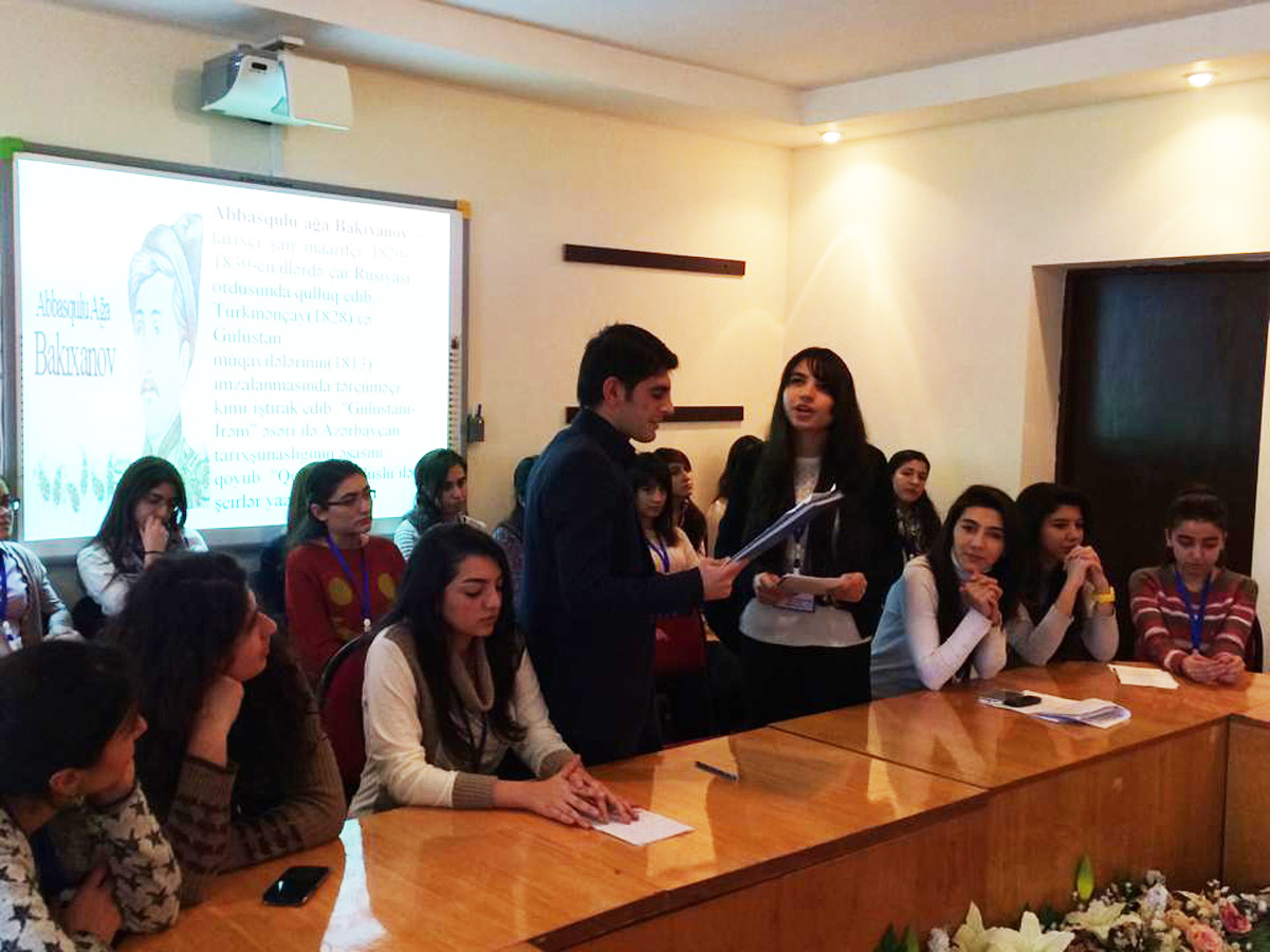Профессорско-преподавательский состав нескольких кафедр института выступили на темы - "Лирика Аббасгулу Ага Бакиханова", "Поэтические произведения Аббасгулу Ага Бакиханова", "Образовательно-воспитательная роль художественного наследия Аббасгулу Ага Бакиханова" и другие.