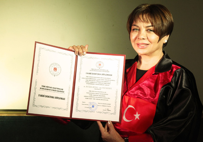 Сугра Багирзаде удостоена почетного звания за вклад в развитие культуры тюрксого мира и за заслуги в развитии азербайджано-турецких отношений.