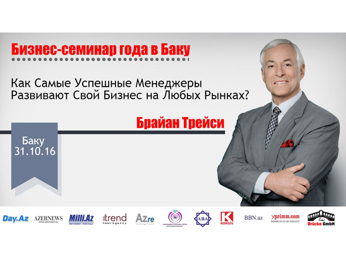 Опыт и знания, которые хочет передать Брайан Трейси, как никогда будут полезны бизнес-сообществу Азербайджана в решении бизнес-задач в части диверсификации бизнеса, достижения стабильности и повышения рентабельности, в борьбе с разного рода проблемами, турбулентностью и сбоями рынка, выхода на новые рынки, улучшения предпринимательской и инвестиционной среды, в достижении других важных бизнес-целей.