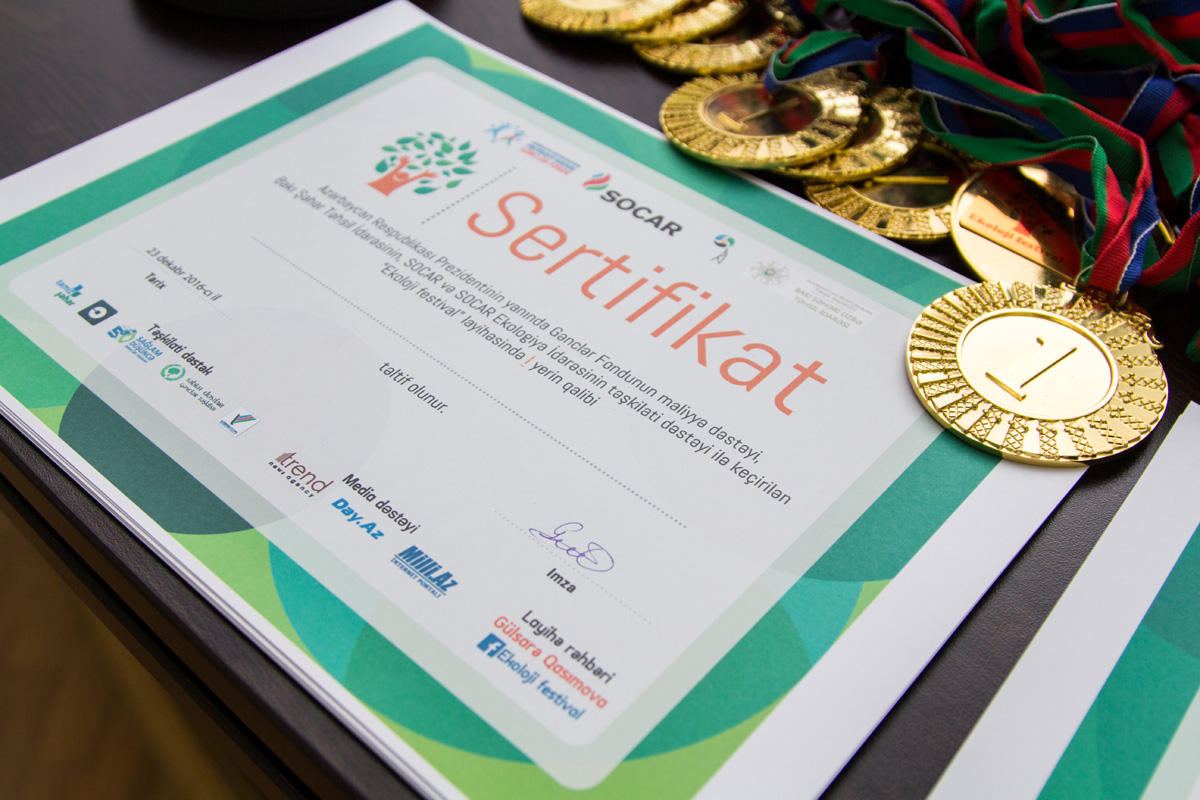 Победителем стала команда Бакинского Европейского лицея, второе место заняли представители лицея "Зякалар", третье - лицея "Истек". Команды были не только отмечены медалями, сертификатами и ценными призами, но и получили возможность принять участие в просветительских мероприятиях, проводимых ОАО "Темиз Шехер" (Чистый Город), молодежной организацией Sağlam Düşüncə, компанией UBER, общественным объединением Təbiət Dostları и Клубом интеллектуальных игр "Азербайджан", воспользоваться их услугами на льготных условиях.