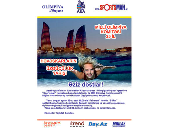 БАКУ /Trend Life/ - При организации Ассоциации спортивных журналистов Азербайджана в Баку пройдет соревнование по плаванию среди любителей, посвященное 25-летию Национального Олимпийского комитета, сообщили Trend Life организаторы мероприятия.