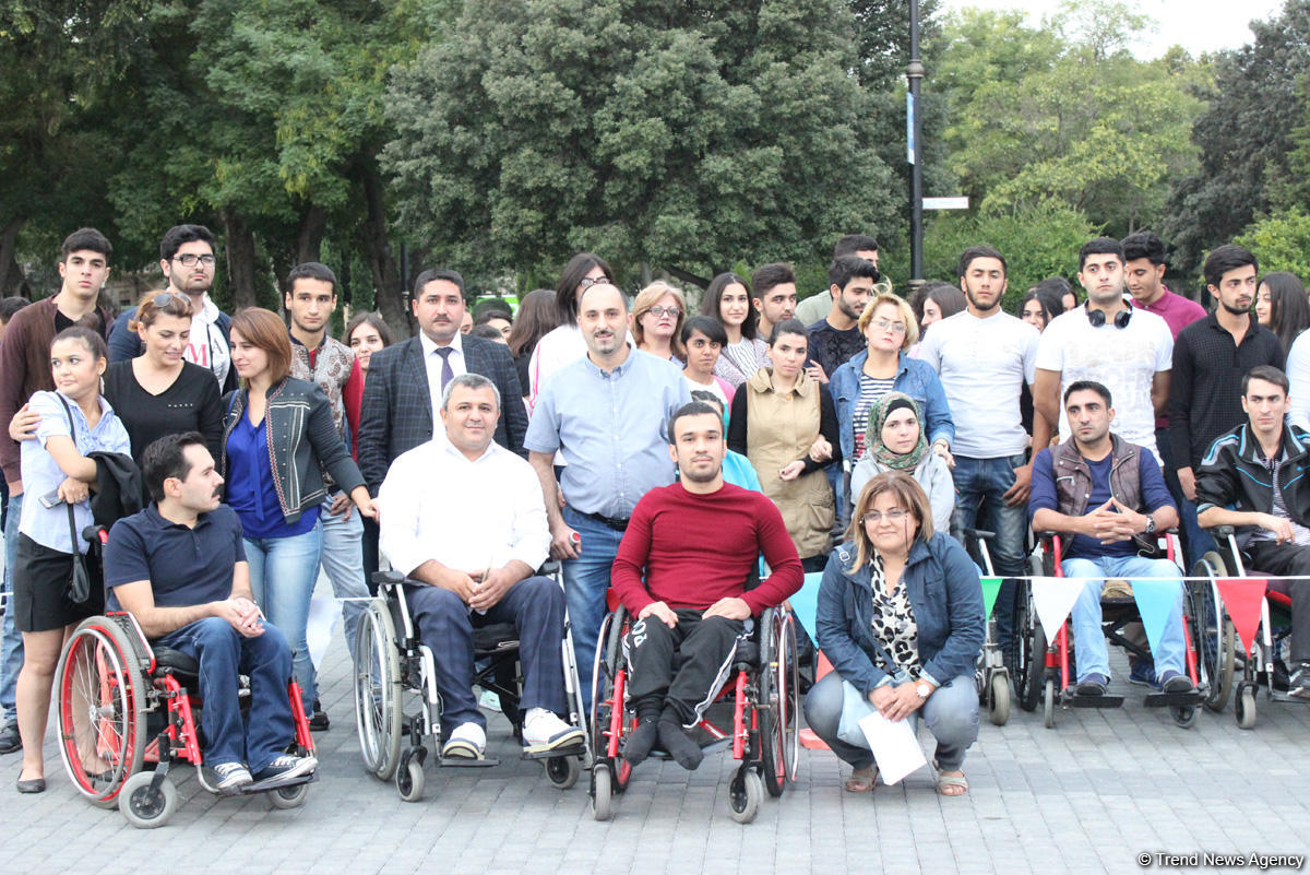 БАКУ /Trend Life/ - На Приморском бульваре Баку прошла необычная акция людей с ограниченными физическими способностями, использующих инвалидные коляски, сообщает Trend Life. В мероприятии была представлена методика использования инвалидных колясок и преодоления различных препятствий, причем каждый желающий мог, как говорится, почувствовать себя в инвалидной коляске.