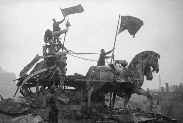 Итак, ранним утром 2 мая воины 1373-го полка 416-й стрелковой дивизии вышли на Маризенплац. Довольно быстро значительная часть оборонявшихся здесь солдат и офицеров была истреблена, а остальные стали сдаваться в плен. Вскоре наши воины водрузили победное Красное знамя над искромсанными осколками Бранденбургскими воротами".
