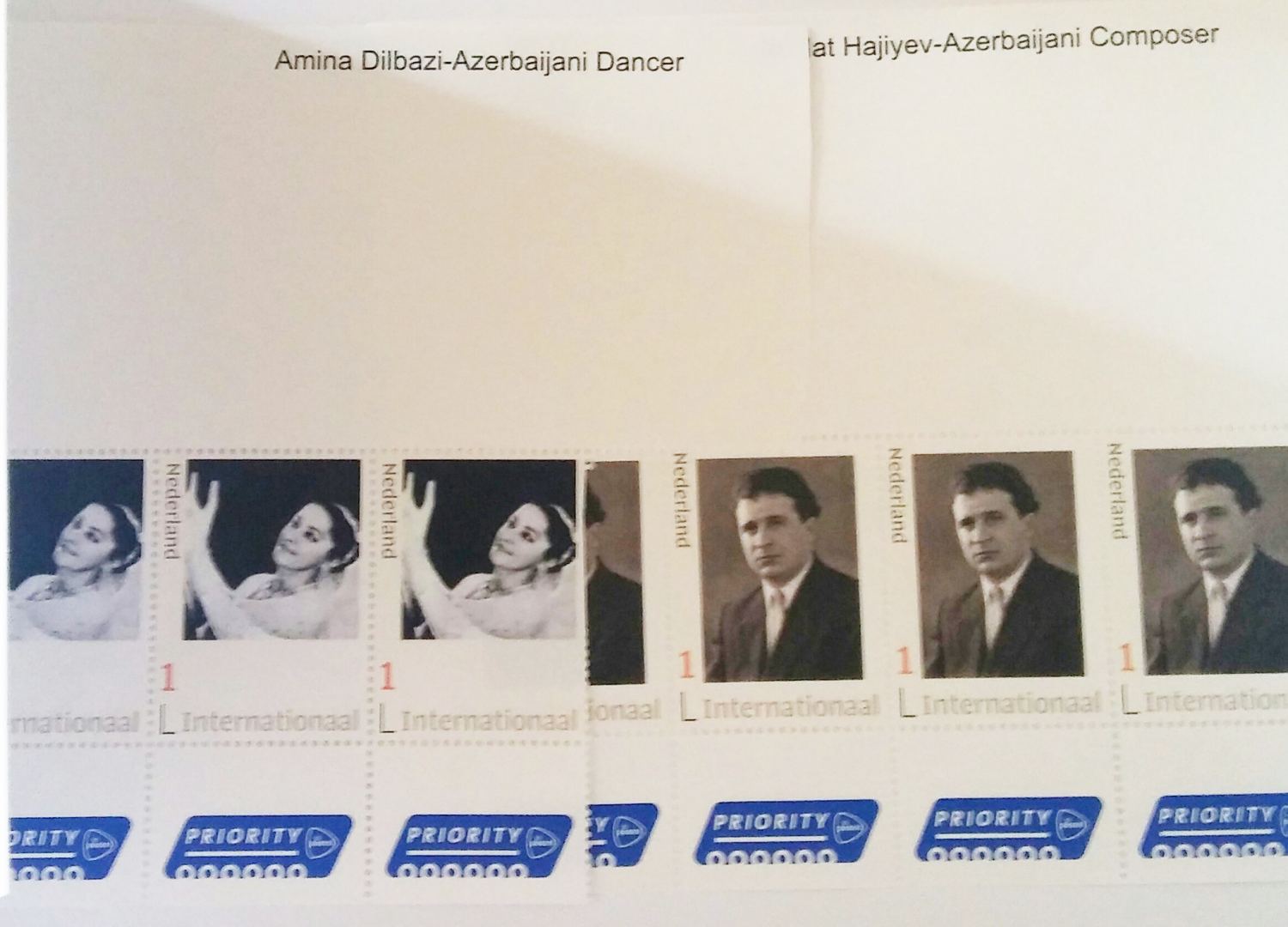 БАКУ /Trend Life/ - В Нидерландах выпущены международные почтовые марки "Амина Дильбази" и "Джовдет Гаджиев" в честь известных деятелей культуры Азербайджана. Марки выпущены официальным национальным оператором почтовой связи Нидерландов PostNL в рамках проекта нашей соотечественницы, проживающей в Амстердаме, хореографа Салтанат Ревангызы под названием «Жемчужины Азербайджана».