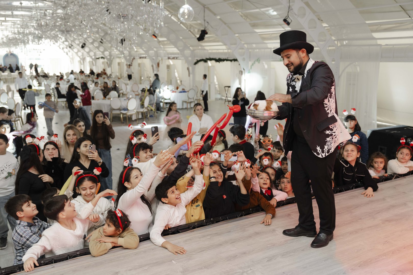 Для маленьких гостей была подготовлена насыщенная развлекательная программа. Детей ждали интерактивные игры и конкурсы с участием любимых сказочных персонажей, яркое шоу воздушных шаров, а также впечатляющее огненное шоу. На протяжении всего мероприятия праздничную атмосферу поддерживал диджей, создавая настроение настоящего зимнего праздника.