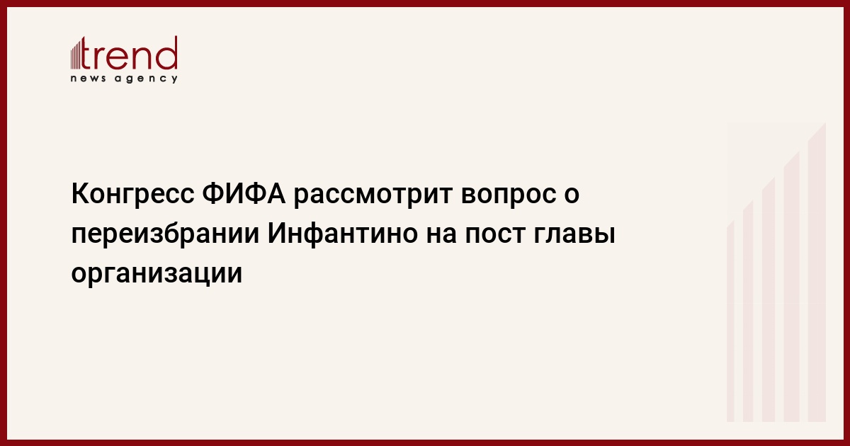 Главным событием конгресса Международной федерации футбола (ФИФА) станут выборы ее президента. Единственным кандидатом на пост является действующий глава организации Джанни Инфантино, передает Trend со ссылкой на ТАСС.