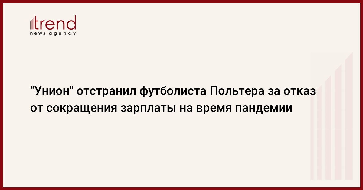 Немецкий футбольный клуб "Унион" объявил о решении отстранить от матчей команды нападающего Себастьяна Польтера, который отказался от сокращения заработной платы на время пандемии. Об этом, как передает Trend со ссылкой на ТАСС, говорится на официальном сайте "Униона".