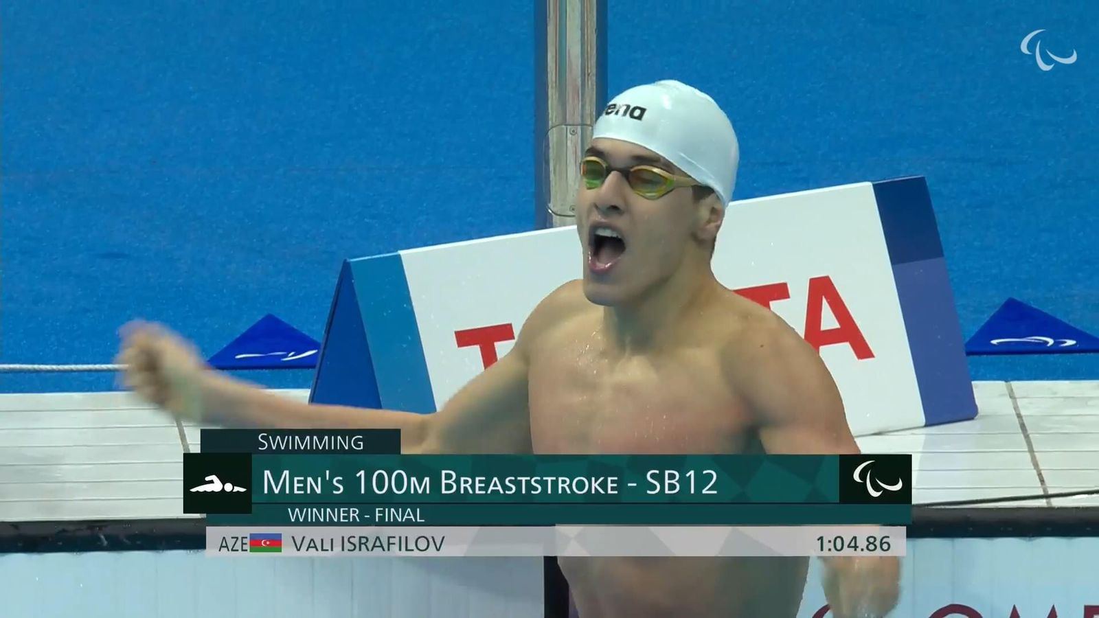 Вели Исрафилов показал лучшее время среди соперников - 1минута 04.86 секунды. Азербайджанский спортсмен побил рекорд Паралимпиады.