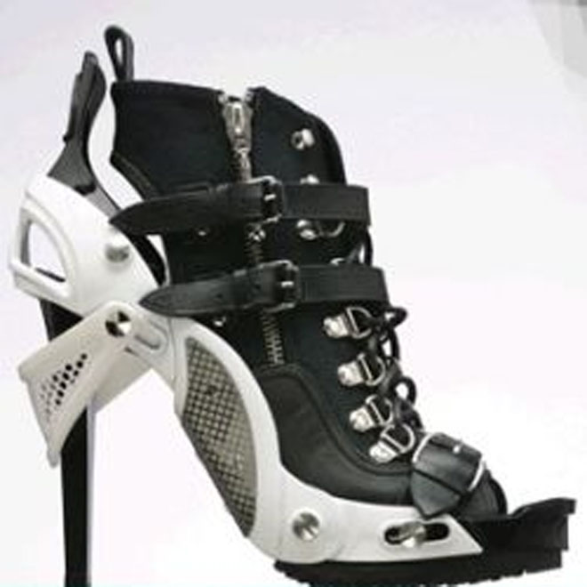 Так появились новые модели туфелек от Balenciaga. Смотрите сами - огромная шпилька и высокий подъем дополняет абсолютное спортивное исполнение. Такое ощущение, что кто-то додумался сделать кроссовки для очень глупых блондинок. Но мы же с Вами не такие?