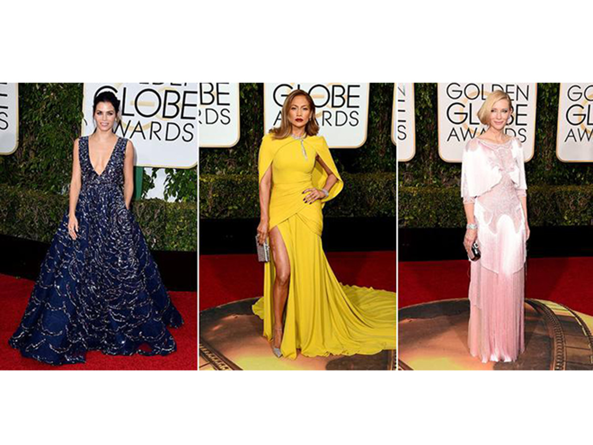 Этот год не стал исключением из правил, и красная дорожка отеля "Беверли-Хилтон" увидела немало стильных и эффектных ансамблей: так, Дженнифер Лопес, Кейт Бланшетт и Эмилия Кларк появились в платьях с летящими кейпами и длинными шлейфами; Джулианна Мур, Оливия Уайлд и Кейт Босуорт поддержали тренд на сверкающие пайетки; Кирстен Данст, Леди Гага и Дженна Дьюэнн сделали акцент на зоне декольте; Дженнифер Лоуренс, Кейт Уинслет и Эми Адамс остановились на однотонных вариантах, подчеркивающих достоинства фигуры; Ева Грин, Рози Хантингтон-Уайтли и Руни Мара блистали в актуальных который сезон подряд невесомых нарядах...