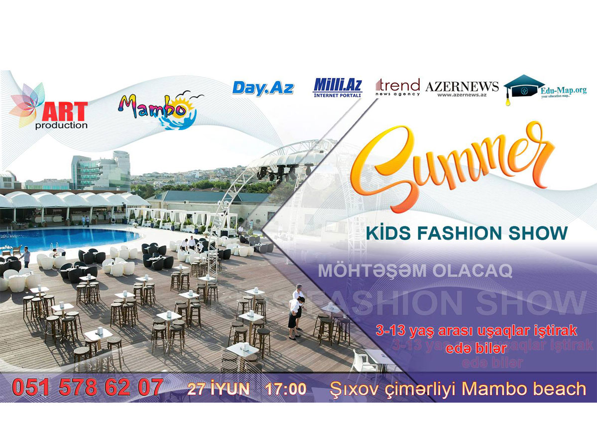 БАКУ /Trend Life/ - В Баку на берегу Каспийского моря в Mambo beach, 27 июня в 18.00, пройдет вечер летней детской моды Summer Kids Fashion Show, организованный Art production, сообщили Trend Life организаторы проекта.