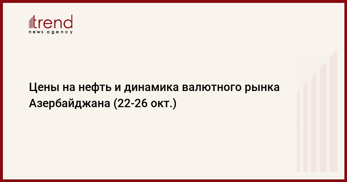 В течение недели в BEST заключались сделки с валютированием в тот же день (T+0): 22 октября - 0,721 миллиона долларов с курсом 0,7841 AZN/USD, 23 октября - 1,875 миллиона долларов с курсом 0,7841 AZN/USD, 24 октября - 0,888 миллионов долларов с курсом 0,7841 AZN/USD, с 25 по 26 октября торги на бирже не проводились из-за праздничных дней.