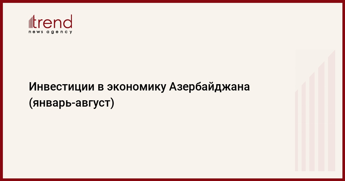 По данным Государственного статистического комитета, в январе-августе 2015 года из всех финансовых источников в развитие экономических и социальных сфер в Азербайджане было инвестировано 10550,1 миллиона манатов, что на 1,7 процентов больше показателя аналогичного периода 2014 года. В августе 2015 года в экономику Азербайджана было инвестировано 1181,6 миллион манатов, что на 13,8 процентов меньше инвестиционных вложений в основной капитал за август 2014 года.