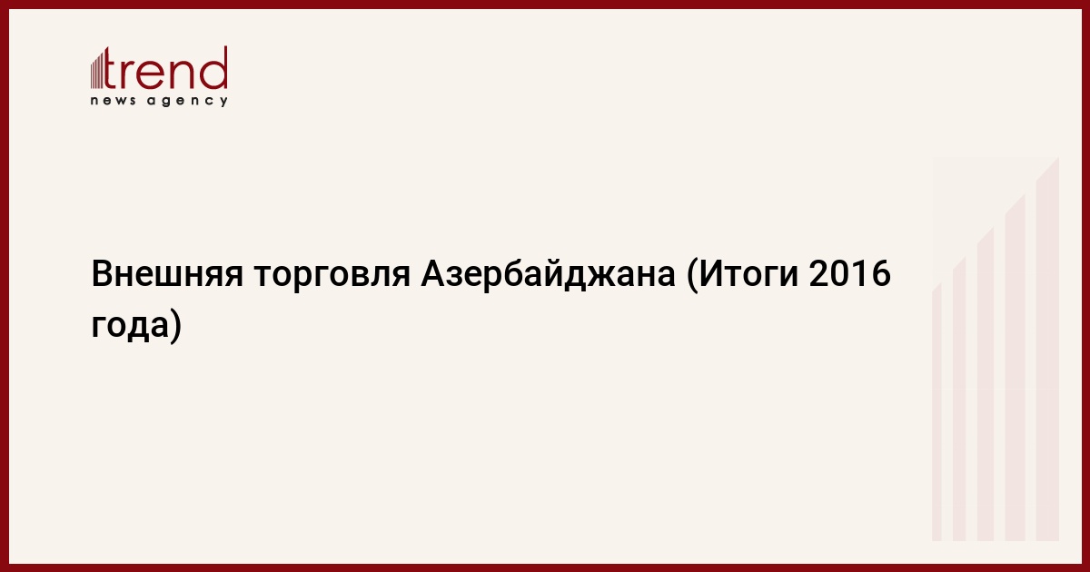 В 2016 году внешнеторговый оборот республики с 186 странами мира (против 165 стран за 2015 год) составил 17,68 миллиарда долларов, что на 19,46 процентов ниже, чем за аналогичный период 2015 года. По сравнению с 2015 годом объем экспорта уменьшился на 28,17 процентов и составил 9,14 миллиарда долларов. Объем импорта уменьшился на 7,42 процента и достиг почти 8,53 миллиардов долларов. При этом Азербайджан за отчетный период экспортировал 2921 видов товаров, импортировал – 7328 видов.