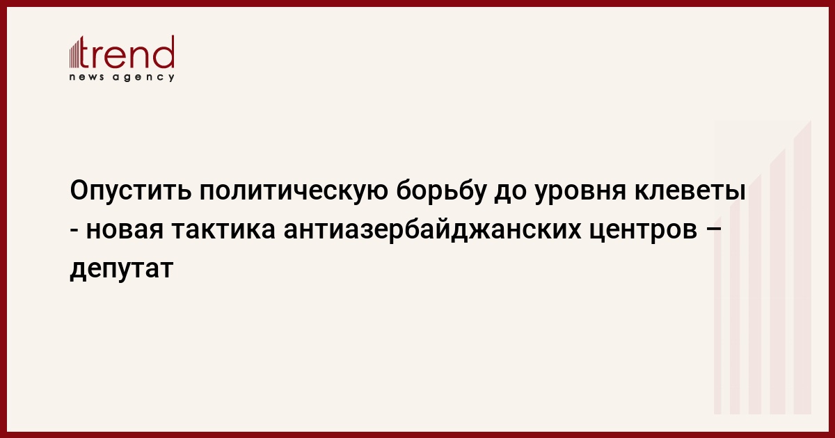 БАКУ /Trend/ - Опустить политическую борьбу до уровня клеветы - новая тактика антиазербайджанских центров, считает депутат Милли Меджлиса (парламента) Азербайджана Хикмет Бабаоглу.