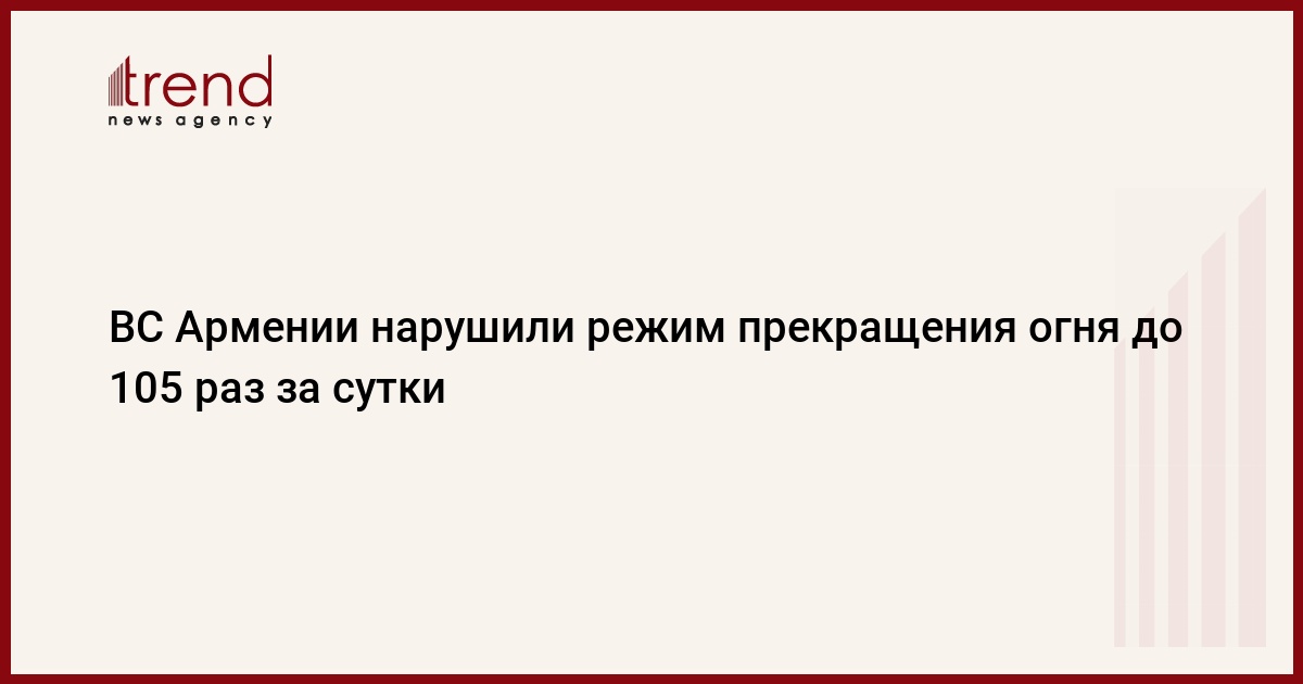 БАКУ /Trend/ - ВС Армении за минувшие сутки нарушили режим прекращения огня на различных направлениях линии соприкосновения азербайджанских и армянских войск 104 раза, говорится в сообщении минобороны Азербайджана, распространенном во вторник.