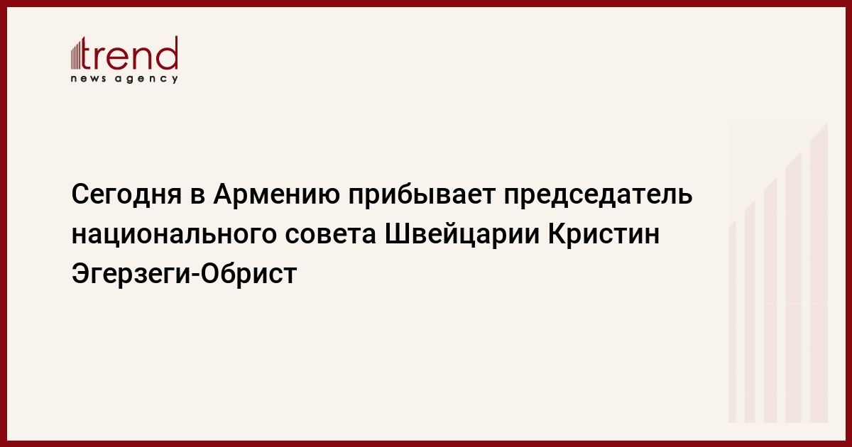 Сегодня в Армению прибывает председатель Национального совета Швейцарии Кристин Эгерзеги-Обрист.