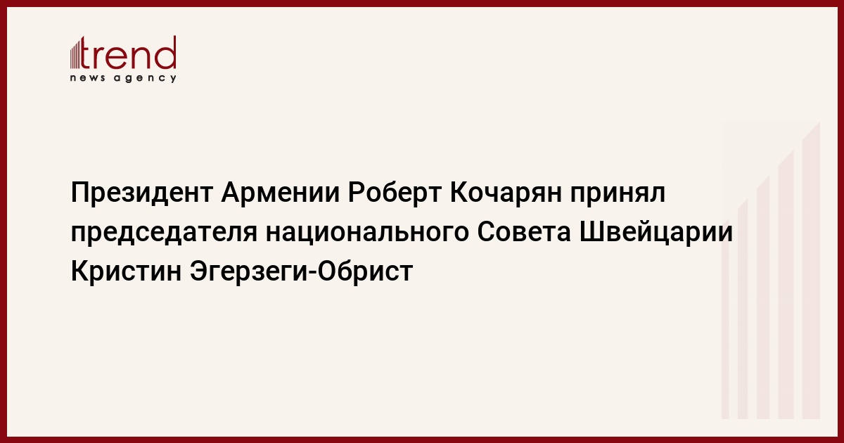 Сегодня президент Армении Роберт Кочарян принял председателя Национального Совета Швейцарии Кристин Эгерзеги-Обрист.