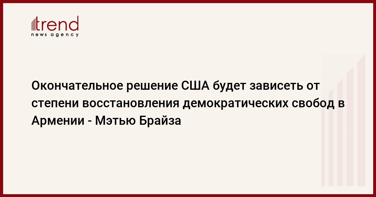 При этом, заметил Мэтью Брайза, окончательное решение США будет зависеть от того, в какой степени будут восстановлены в Армении демократические свободы.