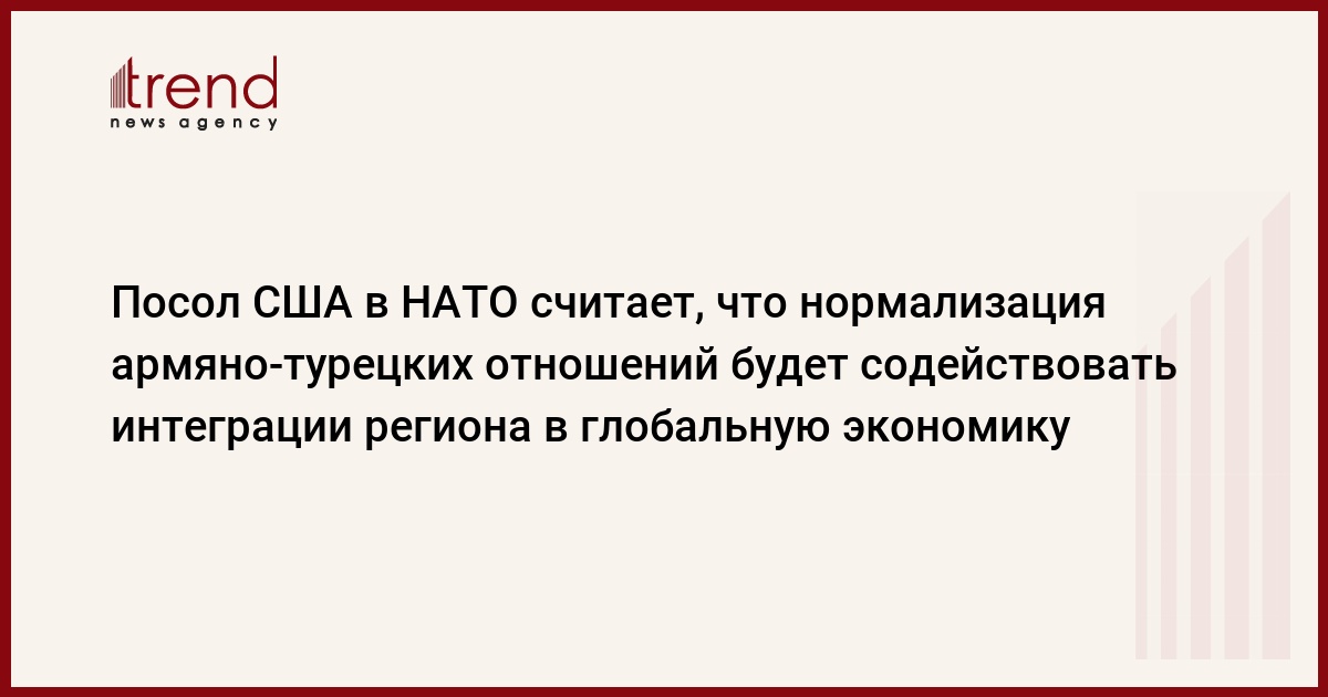 Посол США в НАТО заявил, что начавшиеся контакты между Арменией и Турцией будут иметь позитивное воздействие на процесс карабахского урегулирования и на весь регион в целом.