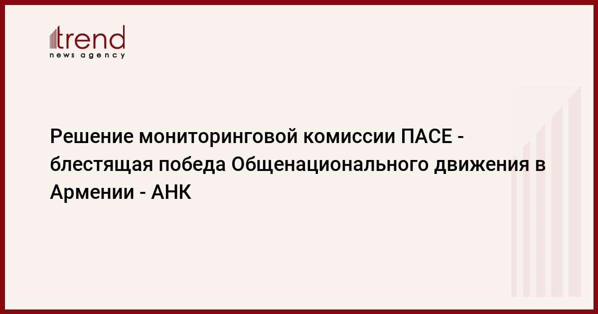 <Решение мониторинговой комиссии ПАСЕ - блестящая победа Общенационального движения в Армении>. Об этом говорится в полученном сегодня агентством АрмИнфо заявлении оппозиционного Армянского национального конгресса.