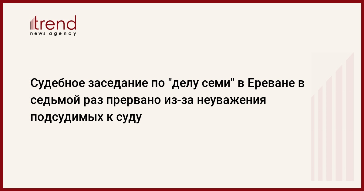 Судебное заседание по так называемому "делу семи" в рамках уголовного дела по факту массовых беспорядков в Ереване 1-2 марта 2008 года уже в седьмой раз прервано из-за неуважительного отношения подсудимых к суду, сообщает Новости-Армения.