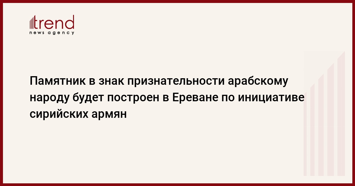Памятник в знак признательности арабскому народу строится в Ереване по инициативе сирийских армян, сказал председатель парламента Овик Абрамян на встрече с президентом Сирии Башаром Асадом, сообщает Новости - Армения.