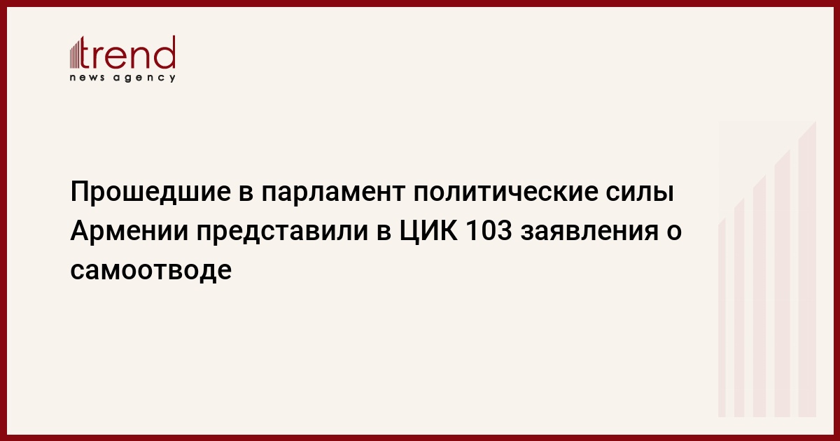 Представители прошедших в парламент Армении пятого созыва политические силы по состоянию на 25 мая представили в ЦИК 103 заявления о самоотводе, сообщила агентству "Новости-Армения" пресс-секретарь Центризбиркома Эрмине Арутюнян.
