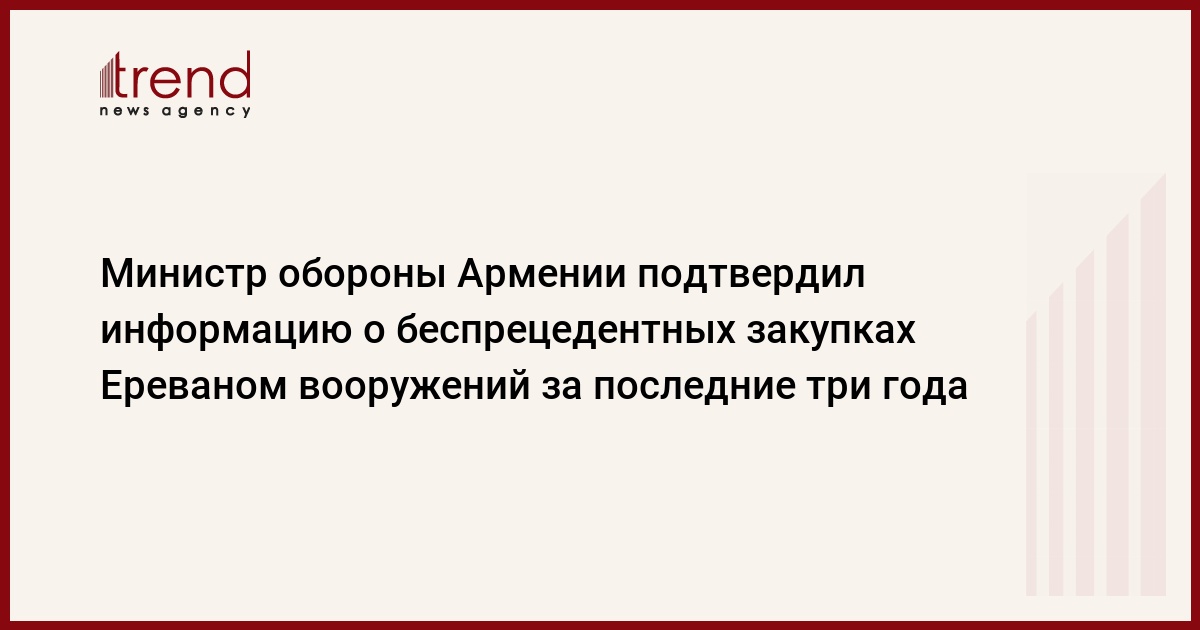 Министр обороны Армении Сейран Оганян подтвердил заявление премьер-министра Тиграна Саркисяна о беспрецедентных закупках Ереваном вооружений за последние три года, пишет Новости-Армения.