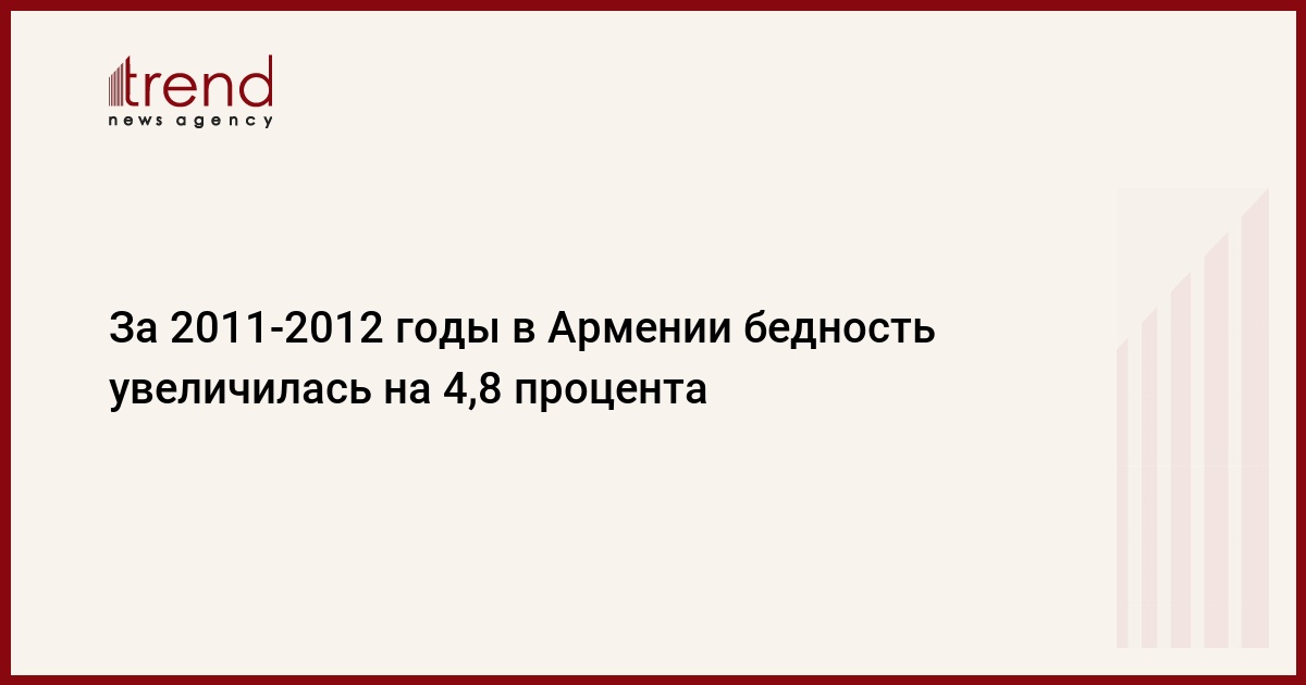 Согласно докладу за 2011-12 годы в Армении бедность увеличилась на 4,8 процента. В своем докладе начальник отдела исследований домашних хозяйств НСС Армении Диана Мартиросова аргументирует тем, что самым важным фактором, обуславливающим рост уровня бедности, стал глубокий спад экономики в 2009 году (14,1 процента). Согласно этому исследованию, в 2012 году приблизительно 1/3 населения (23,4 процента) была бедной, из которой 13,5 процентов - более бедной, 2,8 процента - крайне бедной.