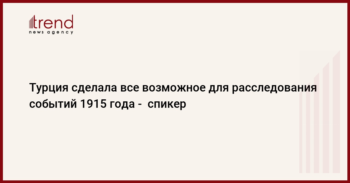 БАКУ /Trend/ - Турция сделала все возможное для расследования событий 1915 года. Об этом заявил председатель Великого национального собрания (парламента) Турции Джемиль Чичек, сообщает в субботу турецкое агентство "Anadolu".