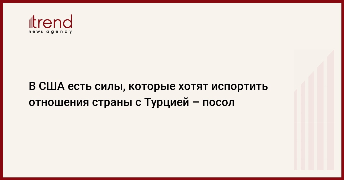 БАКУ /Trend/ - В США есть силы, которые хотят испортить отношения страны с Турцией. Об этом сказал посол Турции в Штатах Сердар Кылыч, пишет в четверг турецкое агентство Anadolu.