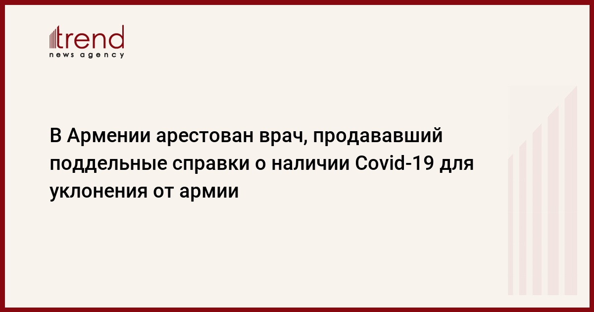 БАКУ /Trend/ - Служба национальной безопасности Армении арестовала врача, который выдавал призывникам поддельные справки о том, что они больны COVID-19.