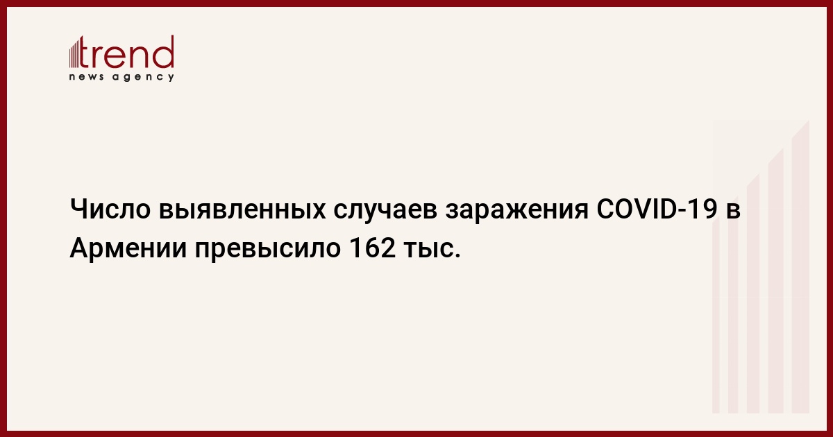 Число подтвержденных случаев заражения коронавирусом в Армении увеличилось до 162 131, сообщает в воскресенье Национальный центр контроля и профилактики заболеваний, передает Trend со ссылкой на армянские СМИ.