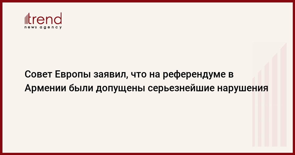 (Радио Свобода) Совет Европы заявил, что на конституционном референдуме в Армении были допущены серьезнейшие нарушения. Свидетелями этих нарушений стали 14 наблюдателей Совета, присутствовавшие на голосовании в воскресенье. По официальным данным, в голосовании приняли участие более 64-х процентов избирателей. По данным оппозиции, явка едва достигала 16-и процентов. В Ереване сторонники оппозиции снова провели сегодня митинг протеста. Поправки в конституцию, подготовленные проправительственными партиями, подразумевают более знАчимую роль парламента. Оппозиция считает реформы недостаточными и требует смены власти.