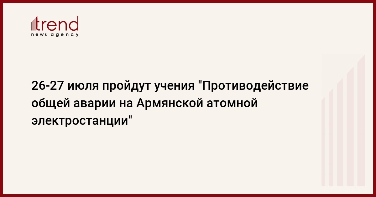 Учения на тему "Противодействие общей аварии на Армянской атомной элекстростанции" пройдут в Ереване и Армавире 26-27 июля.