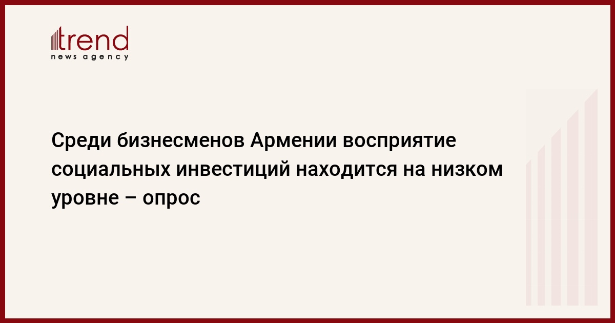 Среди бизнесменов Армении восприятие социальных инвестиций находится на низком уровне. Как заявил в пятницу в Ереване эксперт консалтинговой компании "Америя" Давид Карапетян, об этом свидетельствуют данные проведенного компанией опроса среди представителей среднего и крупного бизнеса Армении.