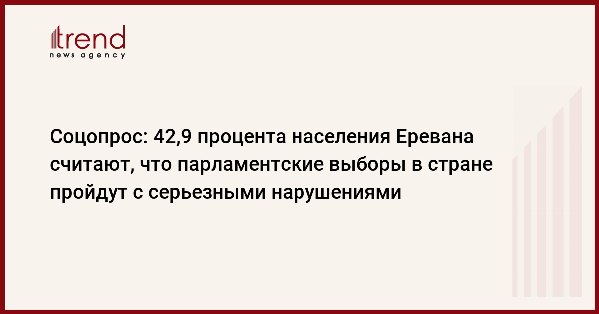 42,9 процента населения Еревана считают, что парламентские выборы в стране пройдут с серьезными нарушениями. Об этом заявил в пятницу в Ереване журналистам директор независимого социологического центра "Социометр" Агарон Адибекян, представляя результаты проведенного социологического исследования.