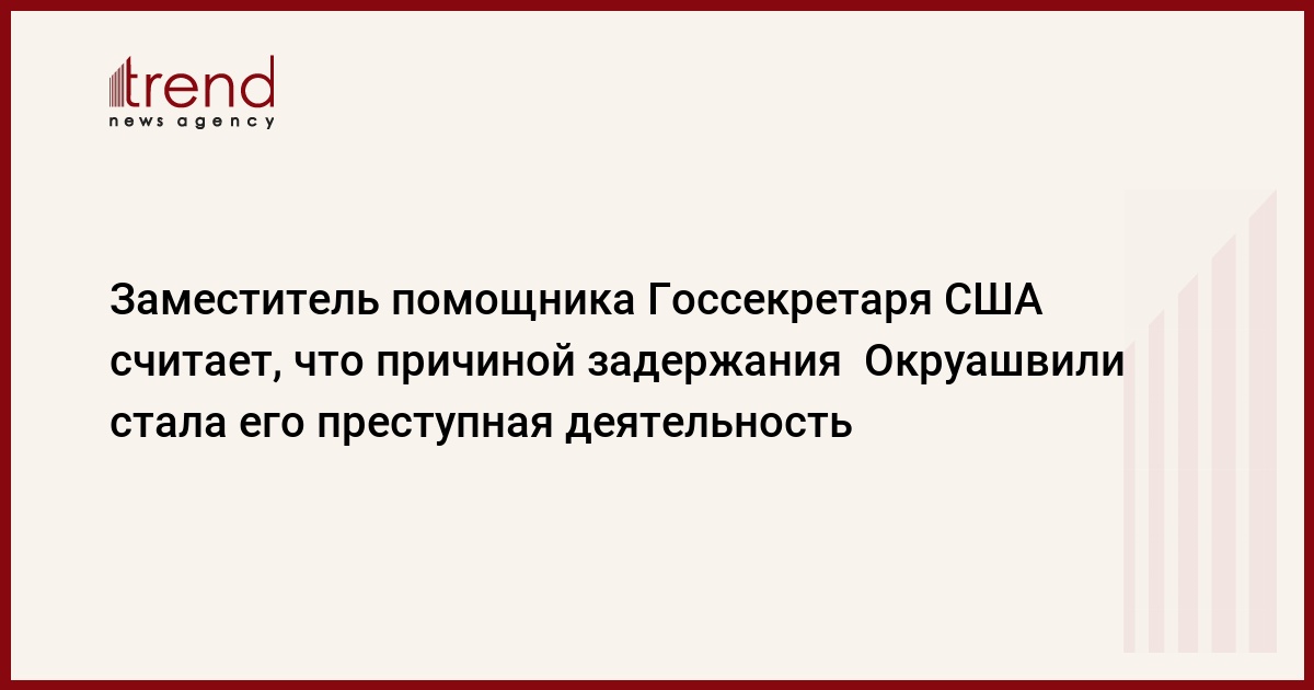 Заместитель помощника Госсекретаря США Мэтью Брайза считает, что, вероятно, причинойвчерашнего задержания экс-министра обороны Грузии Ираклия Окруашвили стала его преступная деятельность, сообщает РБК.