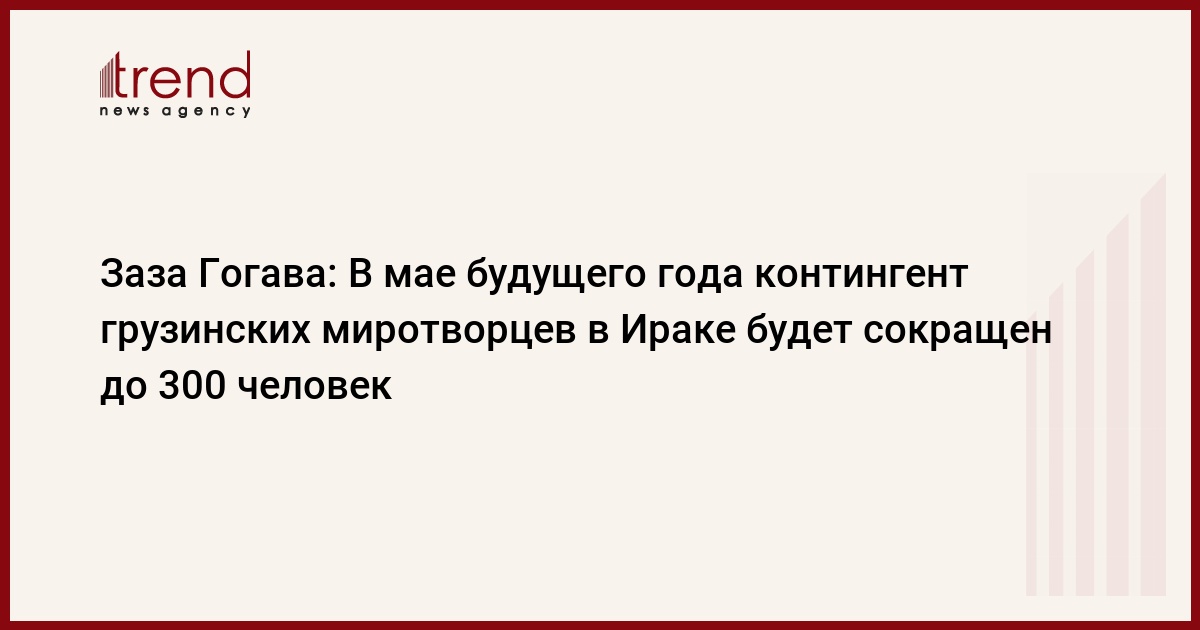Грузия, Тбилиси /корр. Trend Н.Кирцхалиа/ В мае будущего года грузинский контингент в Ираке сократится до 300 человек. Об этом заявил сегодня на брифинге в Минобороны начальник Объединенного штаба ВС Грузии Заза Гогава.