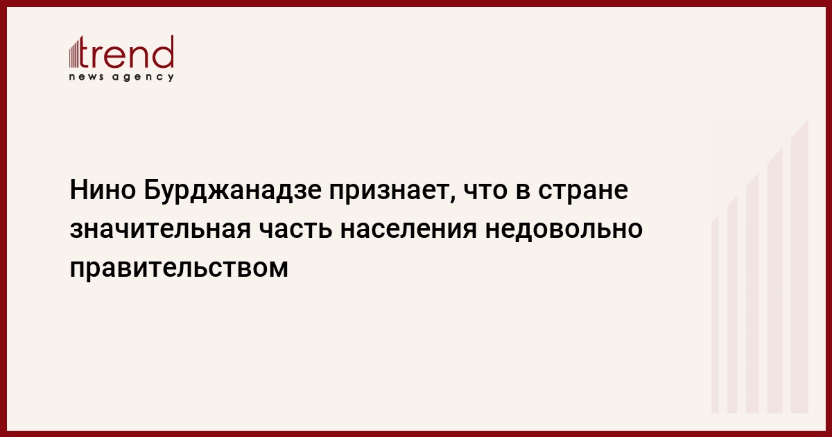 Председатель парламента Грузии Нино Бурджанадзе признает, что в стране значительная часть населения недовольно правительством, передает Новости-Грузия .