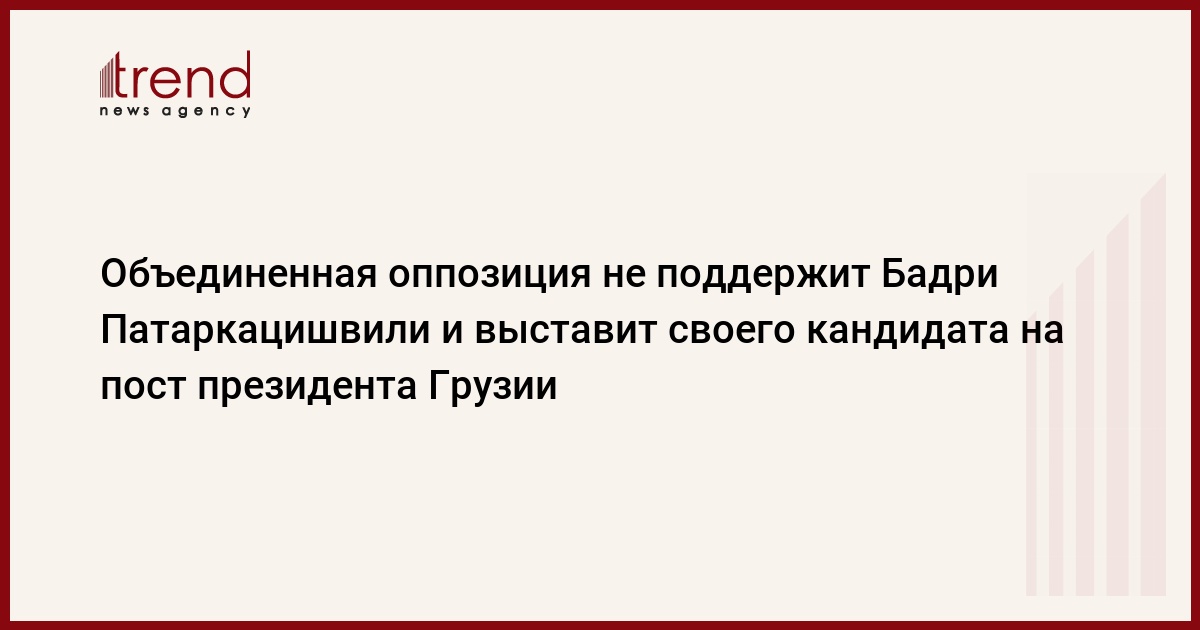 Грузия, Тбилиси /корр. Trend Н.Кирцхалиа/ Объединенная оппозиция не будет поддерживать кандидатуру бизнесмена Бадри Патаркацишвили на президентских выборах и представит своего кандидата. Об этом заявил один из лидеров Объединенной оппозиции Давид Зурабишвили.