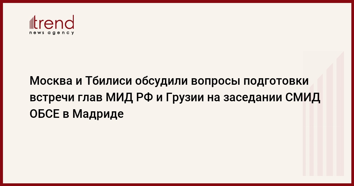 "Беседа касалась практических вопросов двусторонних отношений в контексте подготовки встречи министров иностранных дел России и Грузии "на полях" предстоящего заседания СМИД ОБСЕ в Мадриде", - говорится в сообщении департамента информации и печати МИД РФ.