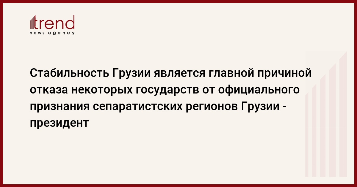 Грузия, Тбилиси, 26 февраля /корр. Trend Н.Кирцхалиа/ Стабильность Грузии стала единственной причиной, по которой Россия отказалась от идеи признания независимости сепаратистских регионов Грузии. Об этом на встрече с ветеранами в Сакребуло Тбилиси заявил президент Грузии Михаил Саакашвили.