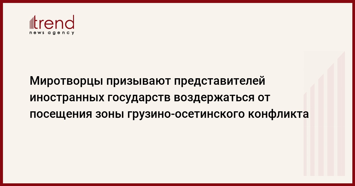 Миротворцы предупреждают, что посещение зоны грузино-осетинского конфликта представителями иностранных государств, международных и общественных организаций без согласования с командованием объединенного штаба Смешанных сил по поддержанию мира (ОШ ССПМ) стало небезопасным, передает Интерфакс .
