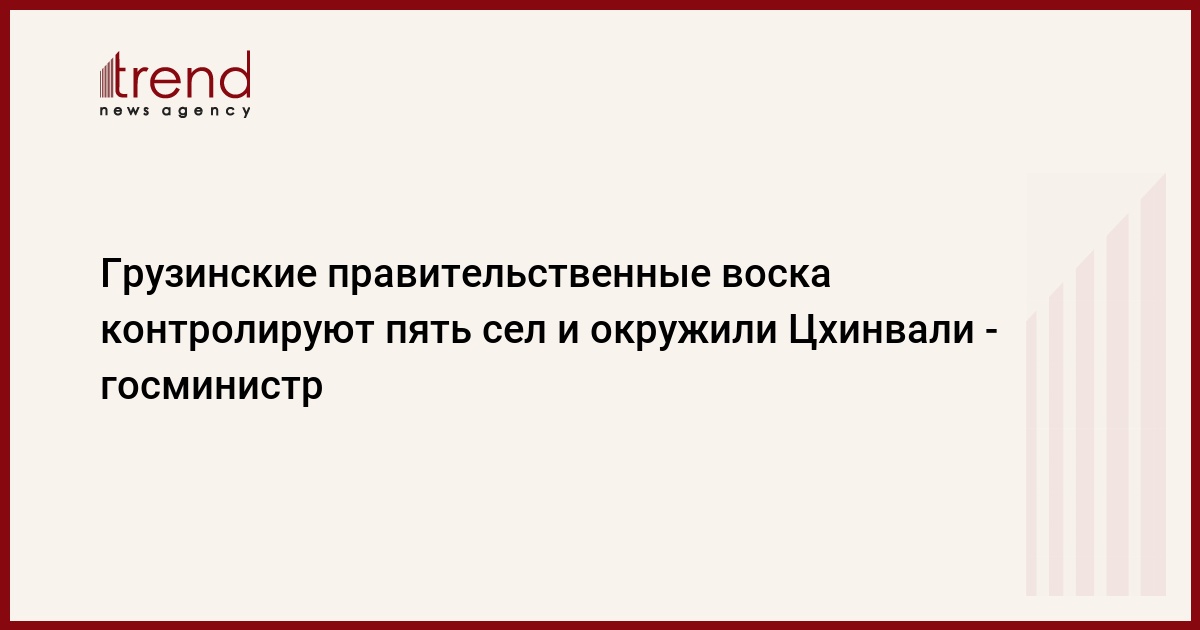 Грузия, Тбилиси, 8 августа/ корр. Trend Н.Кирцхалиа/ Грузинские правительственные войска взяли под контроль пять осетинских сел, заявил сегодня ночью в эфире телекомпании "Рустави 2" госминистр Грузии по реинтеграции Темур Якобашвили. Он сообщил, что это села - Дмениси, Дидмуха, Мугут, Архоци и Квемо Окона.