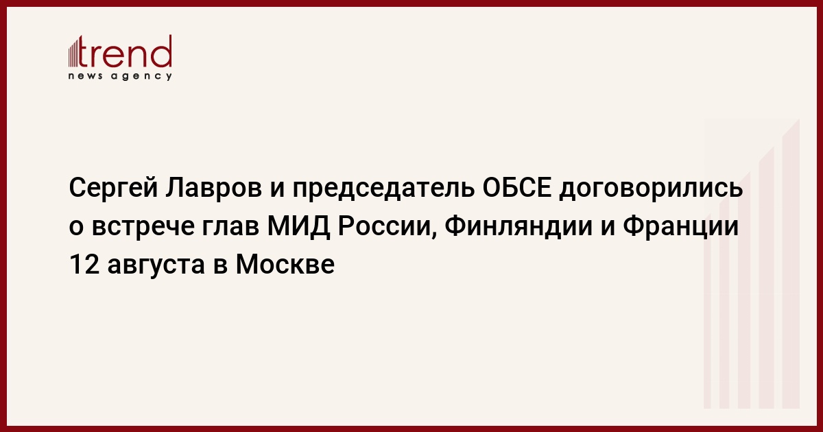 Глава МИД РФ Сергей Лавров в ходе телефонного разговора с действующим председателем ОБСЕ, министром иностранных дел Финляндии Александром Стуббом достиг договоренности о проведении встречи министров иностранных дел России, Финляндии и Франции 12 августа в Москве, сообщает департамент информации и печати МИД РФ.